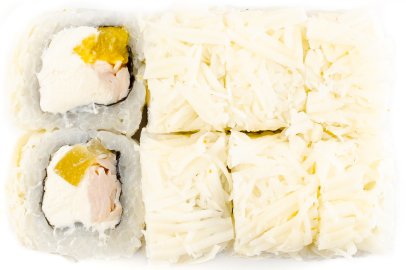 Лист салата, Нори, Огурцы, Перец болгарский , Помидор, Рис, Сыр сливочный, Дайкон,